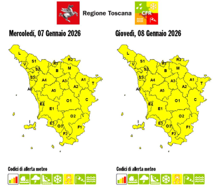 La sala operativa della protezione civile regionale ha infatti prorogato il bollettino di criticità, con codice giallo, già attivo da oggi su tutta la Toscana, anche in previsione di estese gelate notturne a tutte le quote e anche lungo la fascia costiera.